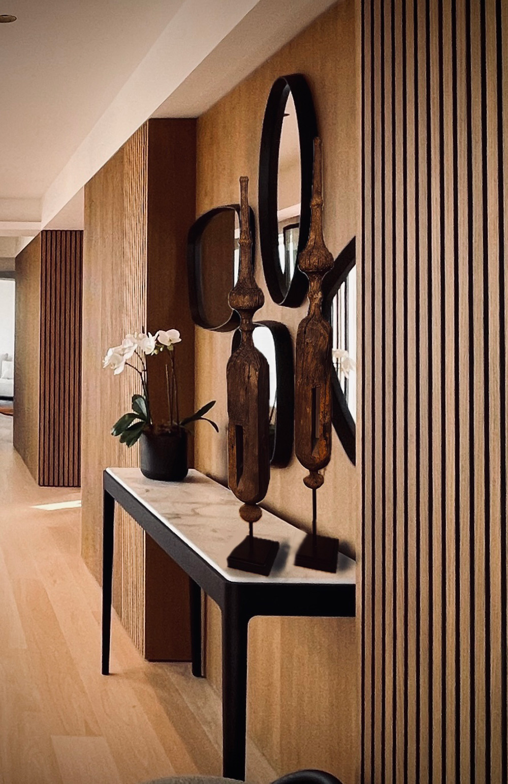 Nuestro enfoque abraza el poder transformador del arte y el diseño, alineando la identidad del apartamento con los ritmos fluidos de sus habitantes. Cada pieza, desde las texturas vintage hasta los acentos contemporáneos, contribuye a una atmósfera sensual y atemporal que evoluciona con las estaciones y con quienes lo habitan.