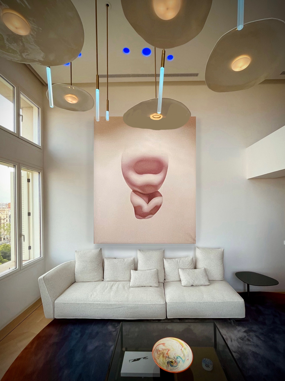 Este espacio narra una historia: una narrativa que conecta de manera fluida épocas y estilos. Inspirándonos en la vitalidad del arte tribal, el expresionismo crudo de Josep de Togorés y el atractivo futurista de Star Wars, el salón encuentra su esencia ecléctica en un atrevido casco Mandaloriano. Aquí, las fronteras del tiempo se desvanecen, invitando a los habitantes a participar en un diálogo inmersivo entre el pasado y el futuro.